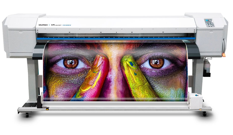 The MUTOH ValueJet 1938WX, a 74-inch printer, is perfect for high-production dye-sublimation applications. Create scarves, blankets, promotional items, tradeshow graphics, flags, banners, custom interior designs, apparel, sports uniforms and more. Designed with advanced features including a rear media feed lever for easy material handling, take-up system, a user-friendly control panel, anda short learning curve so you can focus on customers and profits. The VJ-1938WX provides outstanding performance at a competitive price, making it the smart printer choice for shops looking to expand applications, increase production and improve efficiency.